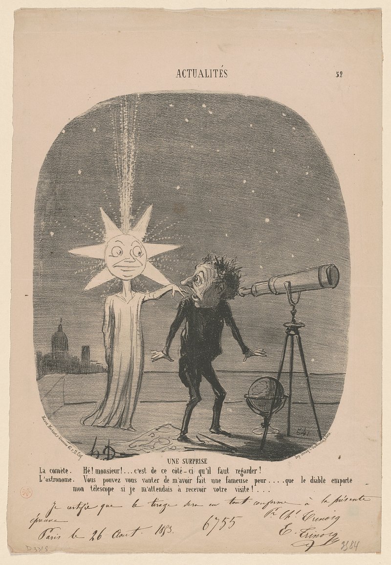 Astronomy: an ancient scholar (Aristotle) observing a meteor or comet using a telescope. Engraving by J. Kip, 1694, after G.… https://www.rawpixel.com/image/14003080/image-cartoon-person-crossFree Image from public domain license