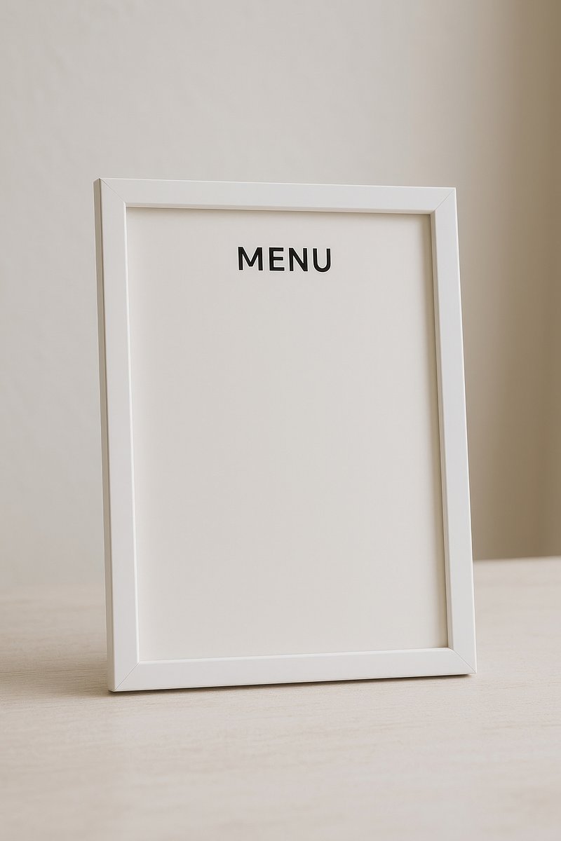 Minimalist menu frame display. https://www.rawpixel.com/image/24589331/minimalist-menu-frame-displayView license