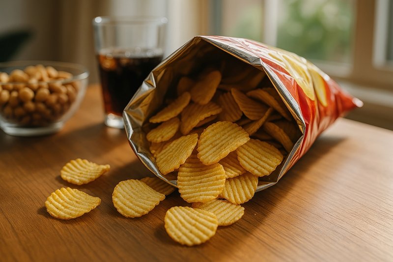 Crispy chips spilling joyfully. https://www.rawpixel.com/image/17436085/crispy-chips-spilling-joyfullyView license