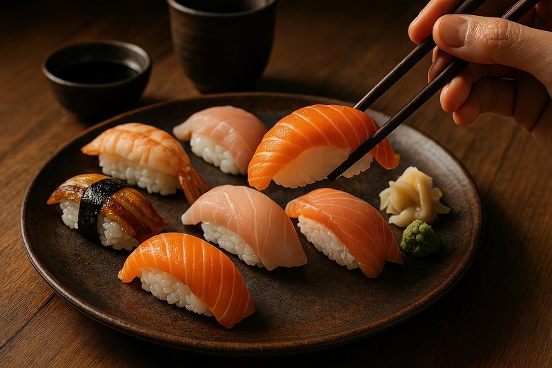 Delicious sushi on ceramic plate. https://www.rawpixel.com/image/17435490/delicious-sushi-ceramic-plateView license