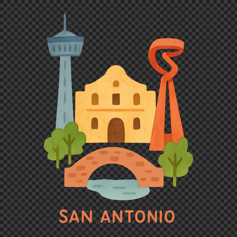PNG Colorful San Antonio landmarks illustration. https://www.rawpixel.com/image/18704671/png-colorful-san-antonio-landmarks-illustrationView license