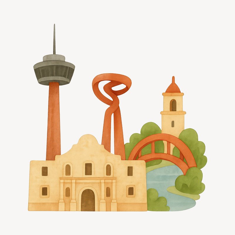 San Antonio landmarks watercolor illustration. https://www.rawpixel.com/image/19327950/san-antonio-landmarks-watercolor-illustrationView license