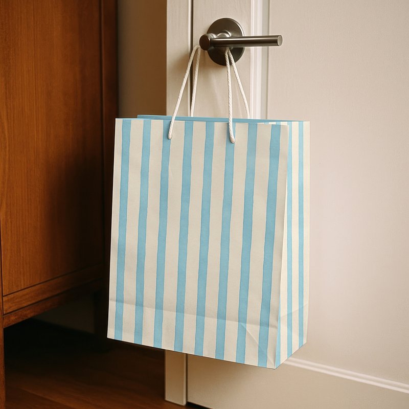 Striped paper bag mockup hanging psd https://www.rawpixel.com/image/24126014/striped-paper-bag-mockup-hanging-psdView license