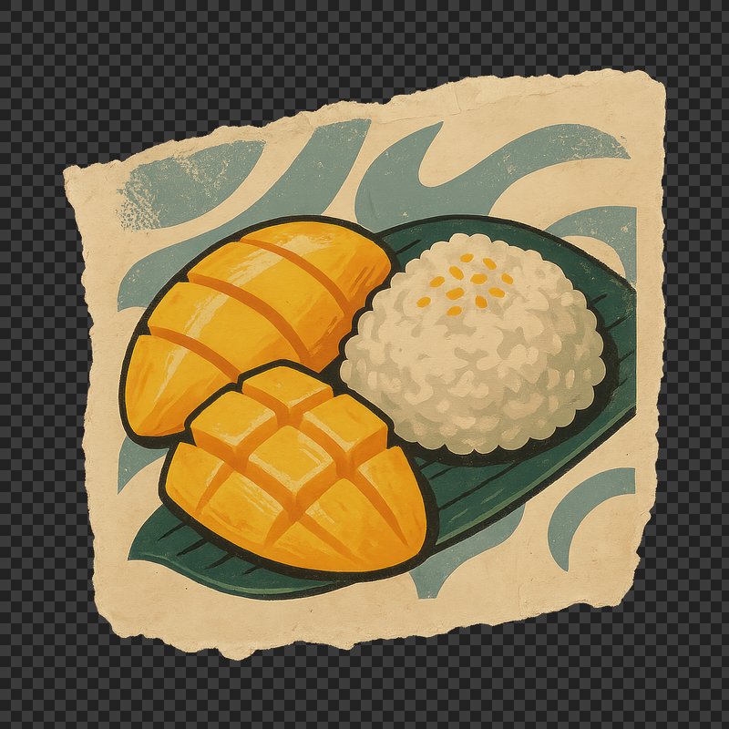 Mango sticky rice illustration. https://www.rawpixel.com/image/24336617/mango-sticky-rice-illustrationView license