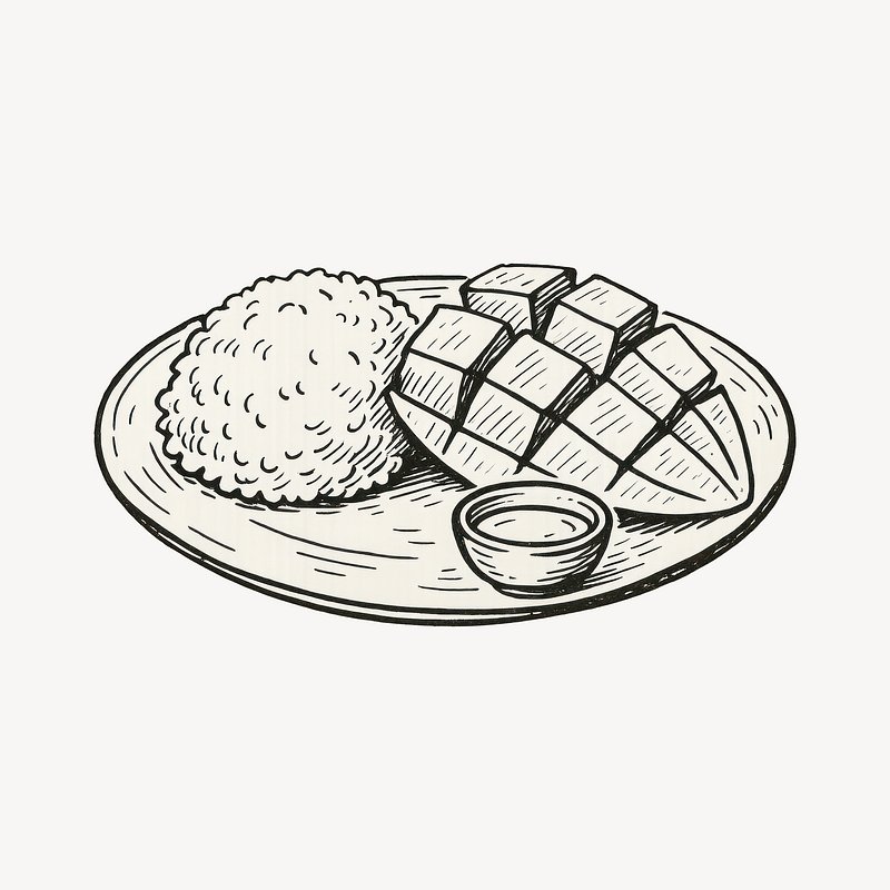 Mango sticky rice illustration sketch https://www.rawpixel.com/image/24340809/mango-sticky-rice-illustration-sketchView license