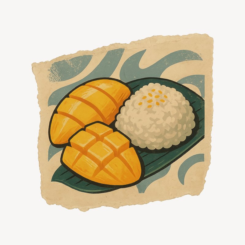 Mango sticky rice illustration https://www.rawpixel.com/image/24564671/mango-sticky-rice-illustrationView license