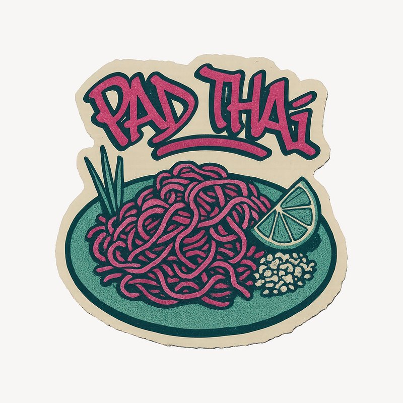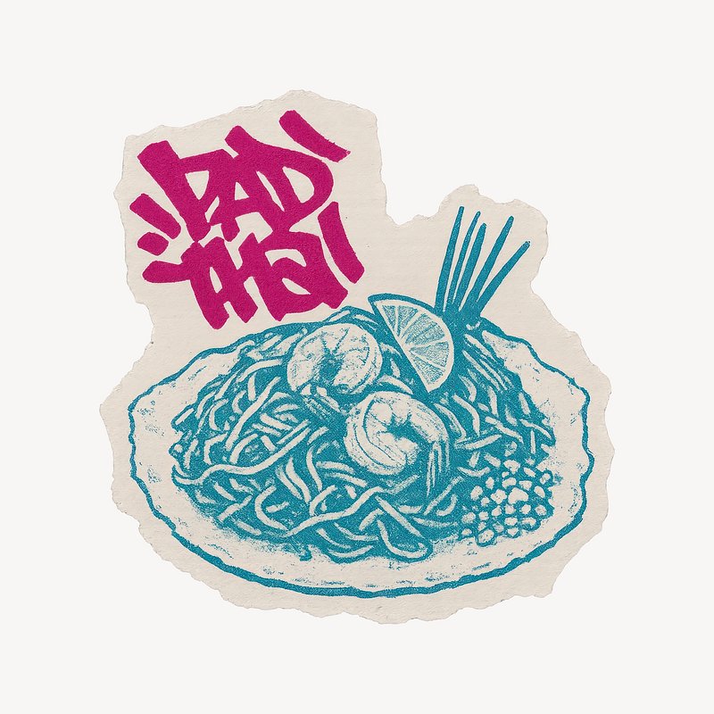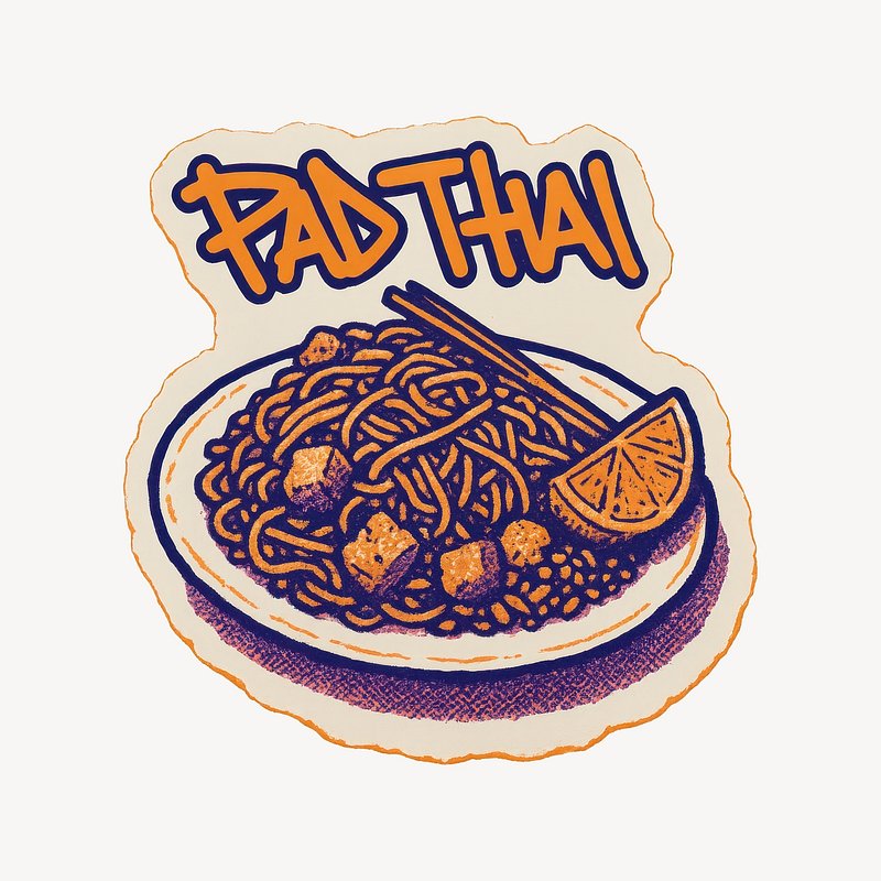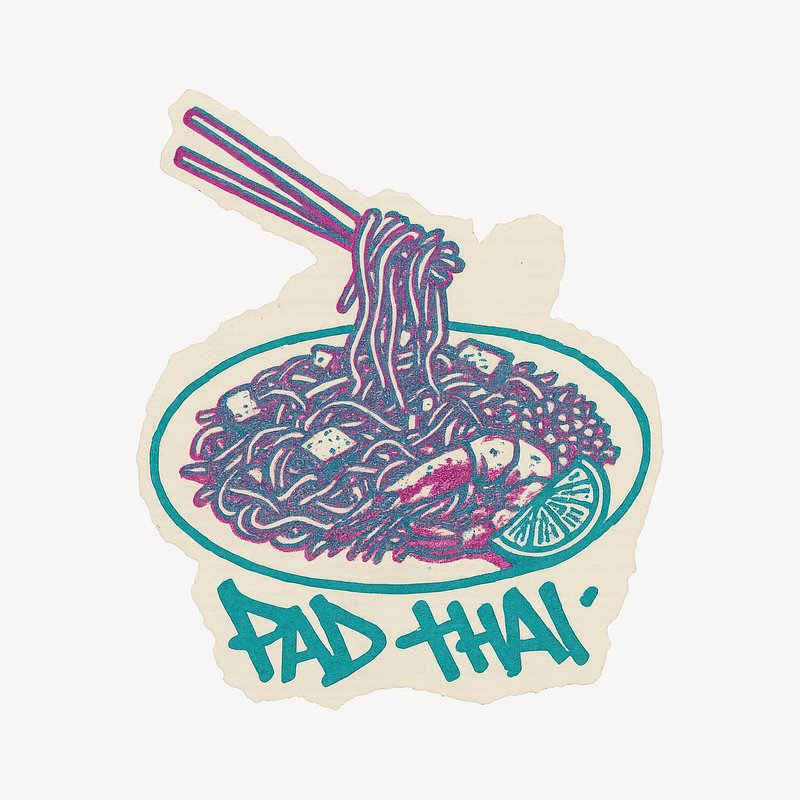 Vibrant Pad Thai sticker design. https://www.rawpixel.com/image/24652100/vibrant-pad-thai-sticker-designView license