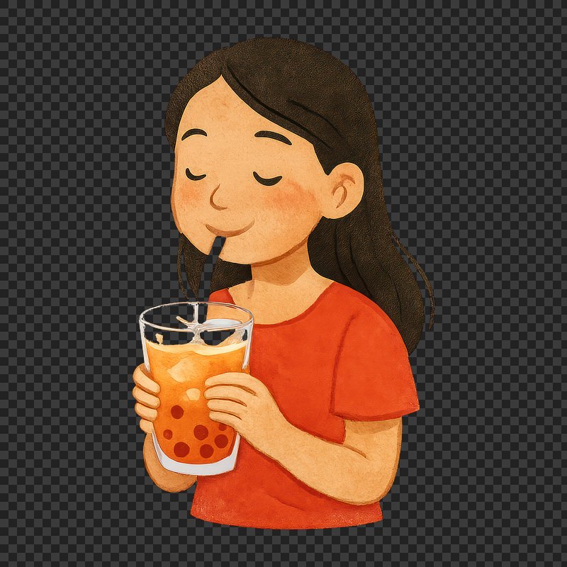 PNG Girl enjoying bubble tea drink. https://www.rawpixel.com/image/19123273/png-girl-enjoying-bubble-tea-drinkView license