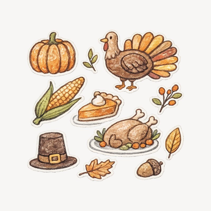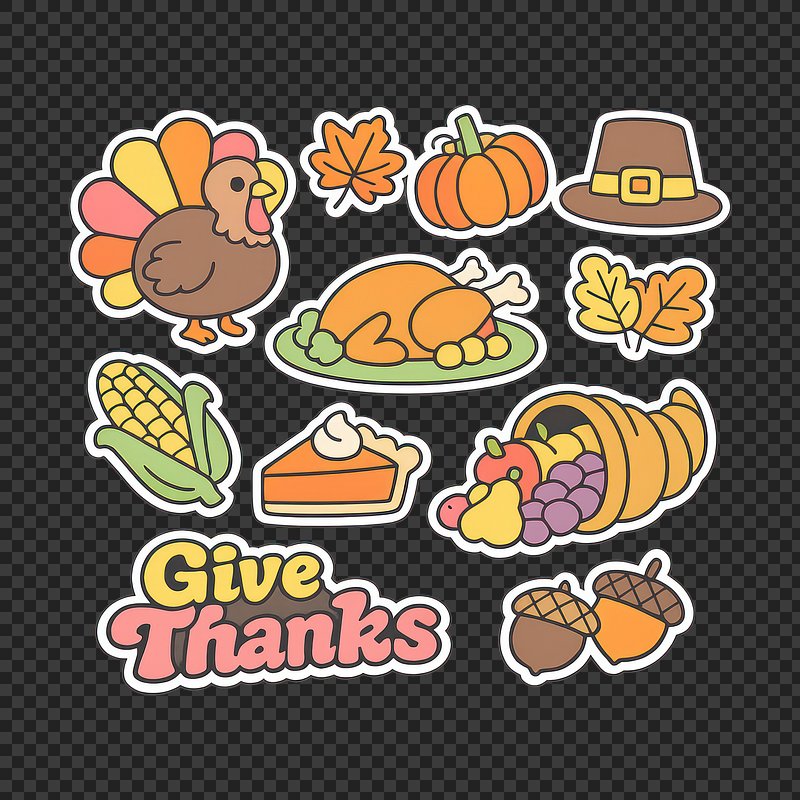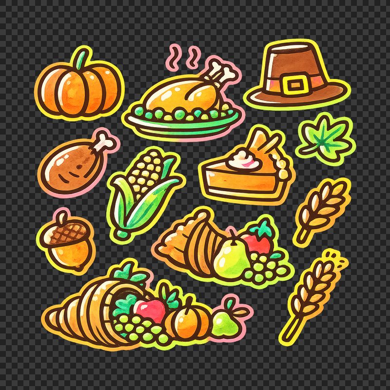 PNG Colorful Thanksgiving sticker collection. https://www.rawpixel.com/image/25634534/png-colorful-thanksgiving-sticker-collectionView license