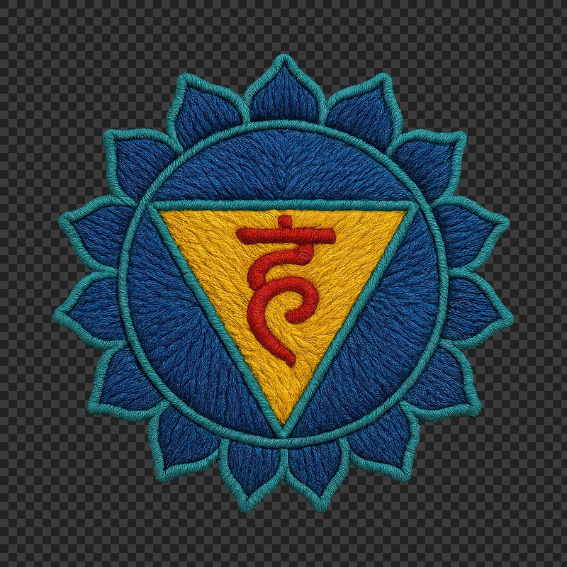 PNG Colorful embroidered throat chakra symbol. https://www.rawpixel.com/image/21335160/png-colorful-embroidered-throat-chakra-symbolView license