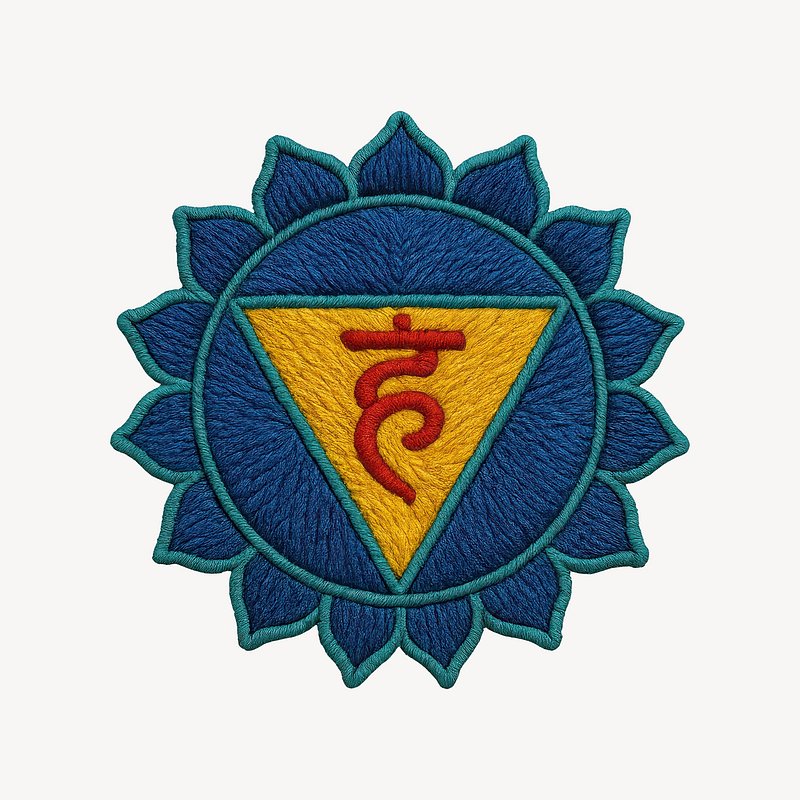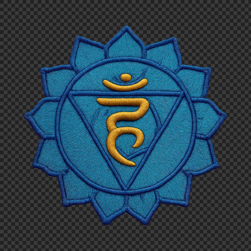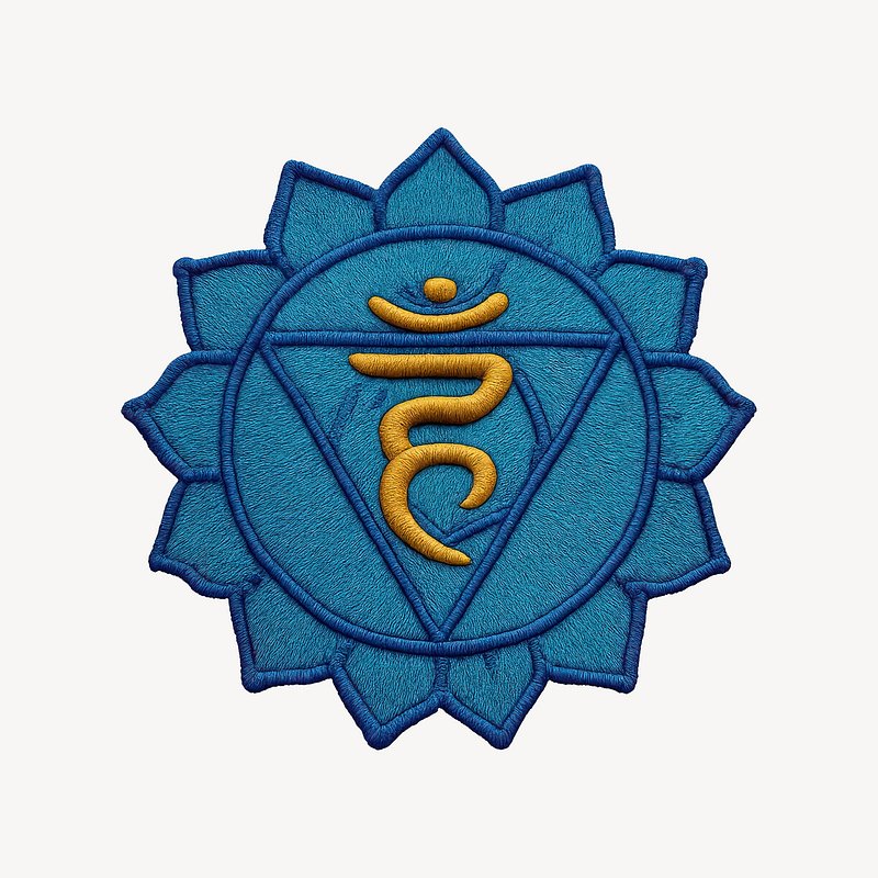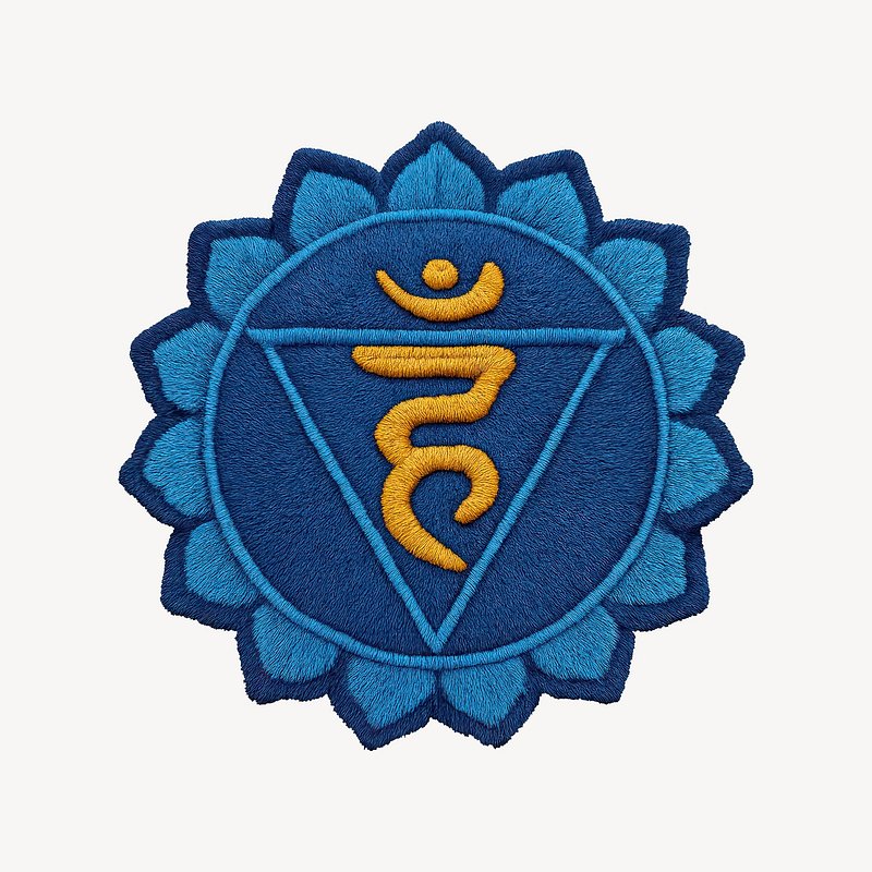 Blue embroidered throat chakra symbol. https://www.rawpixel.com/image/22105658/blue-embroidered-throat-chakra-symbolView license
