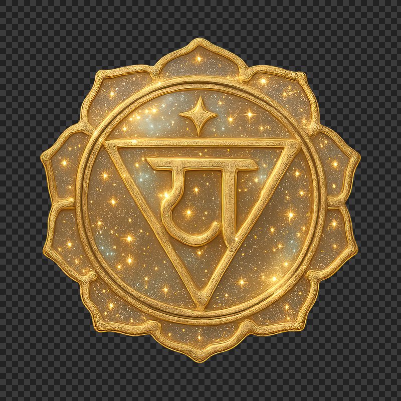 PNG Golden sparkling throat chakra symbol. https://www.rawpixel.com/image/23518452/png-golden-sparkling-throat-chakra-symbolView license