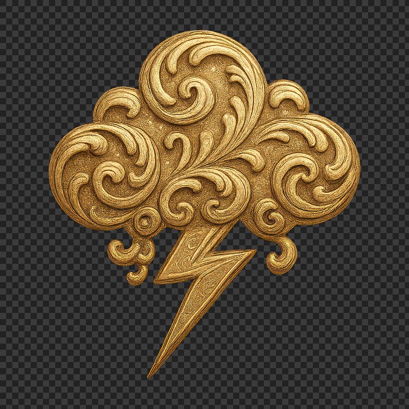 PNG Ornate golden thundercloud emblem. https://www.rawpixel.com/image/18572859/png-ornate-golden-thundercloud-emblemView license
