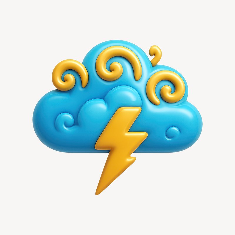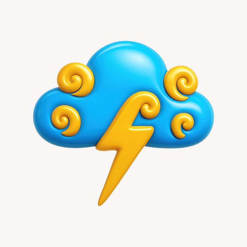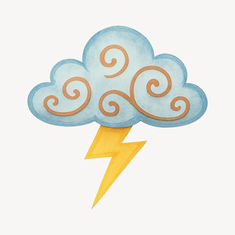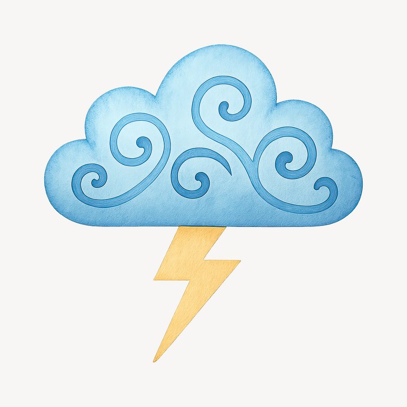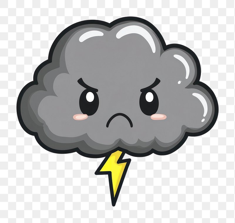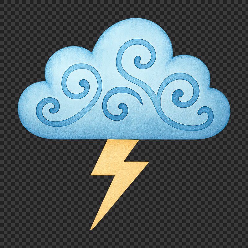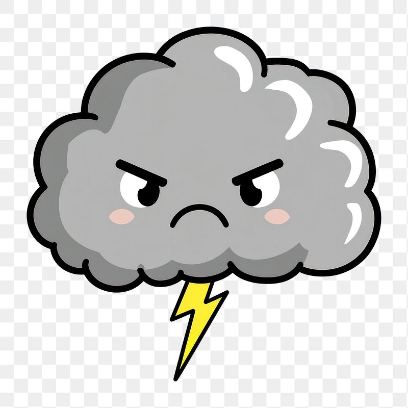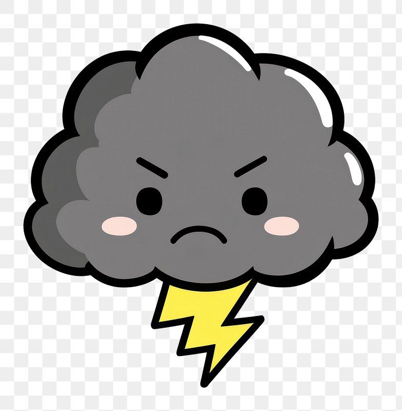 Whimsical cloud with lightning bolt. https://www.rawpixel.com/image/21182177/whimsical-cloud-with-lightning-boltView license