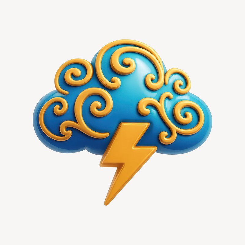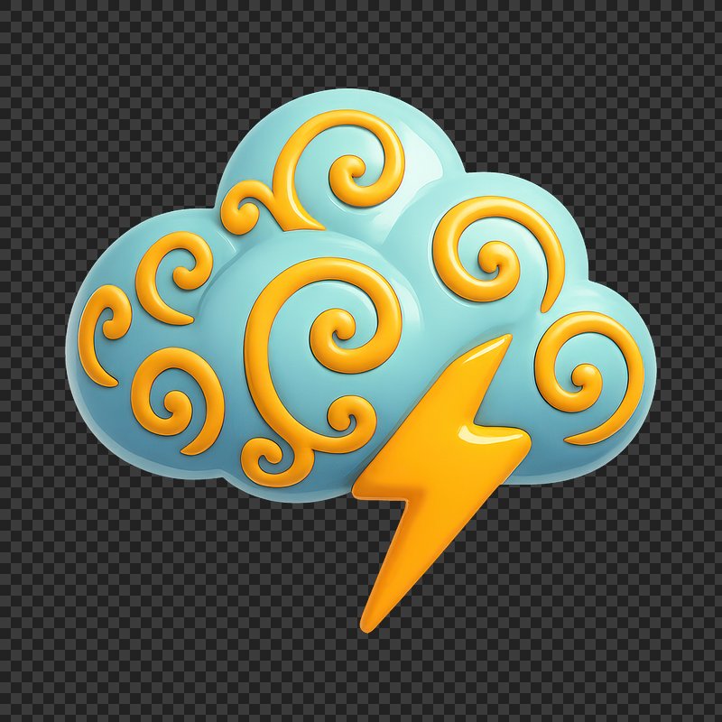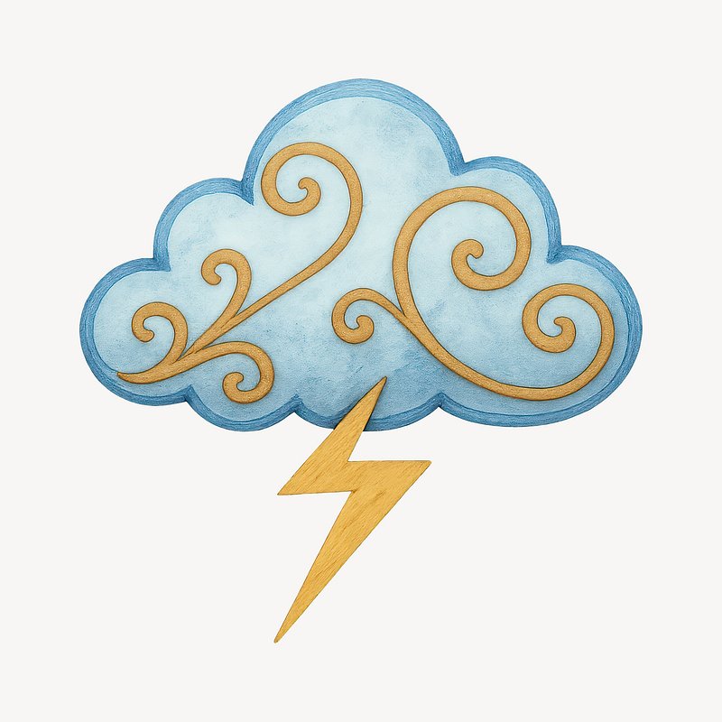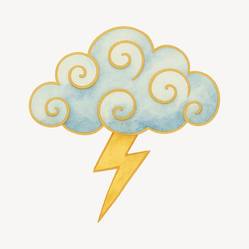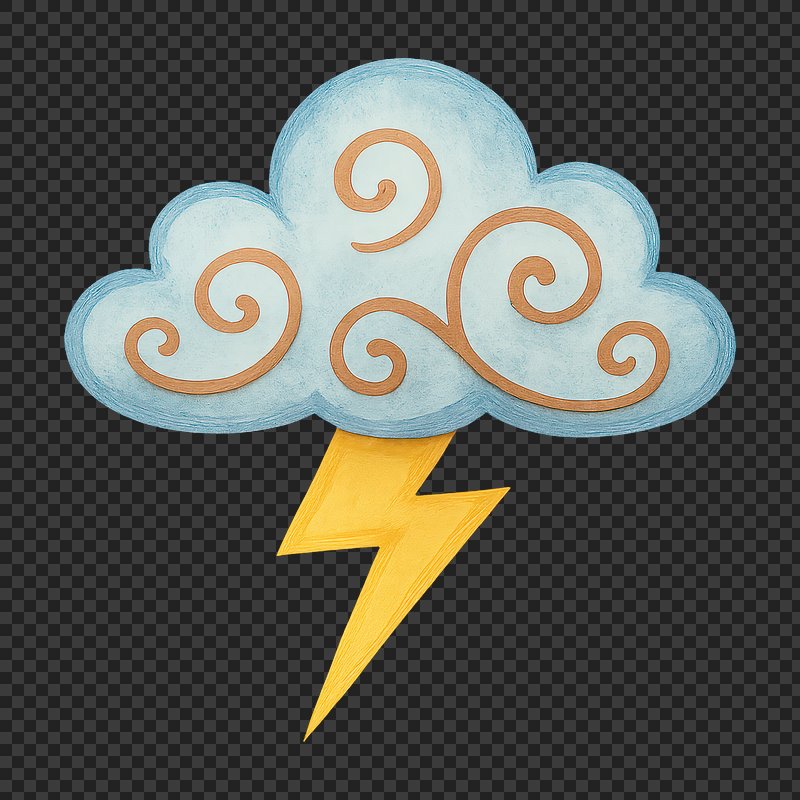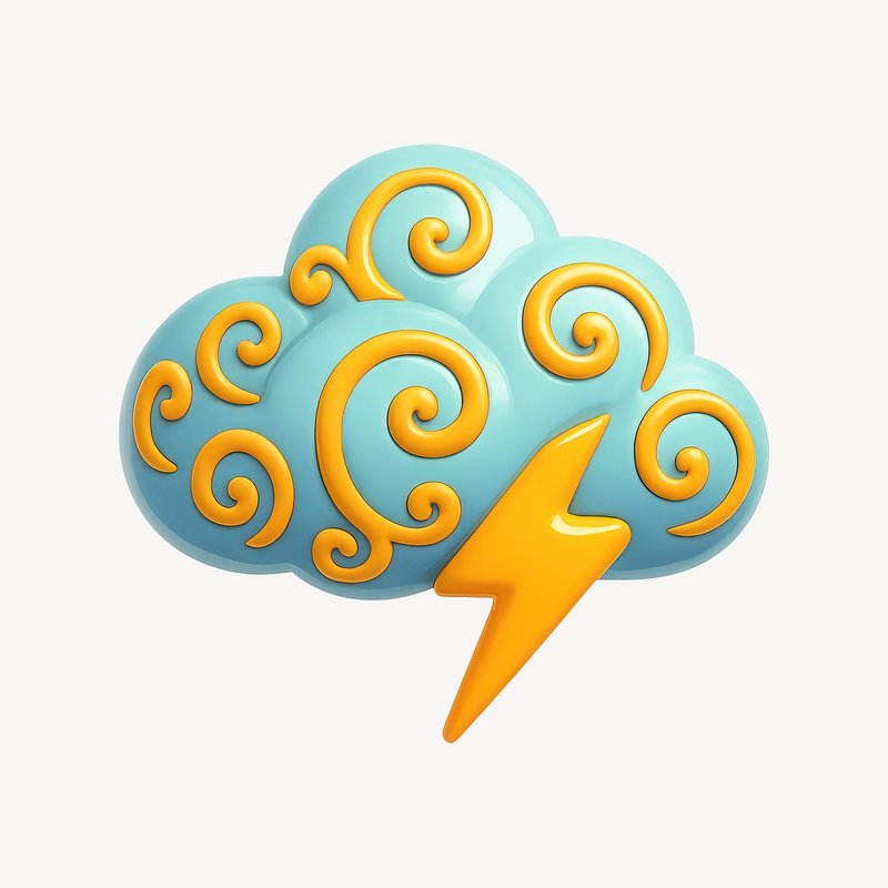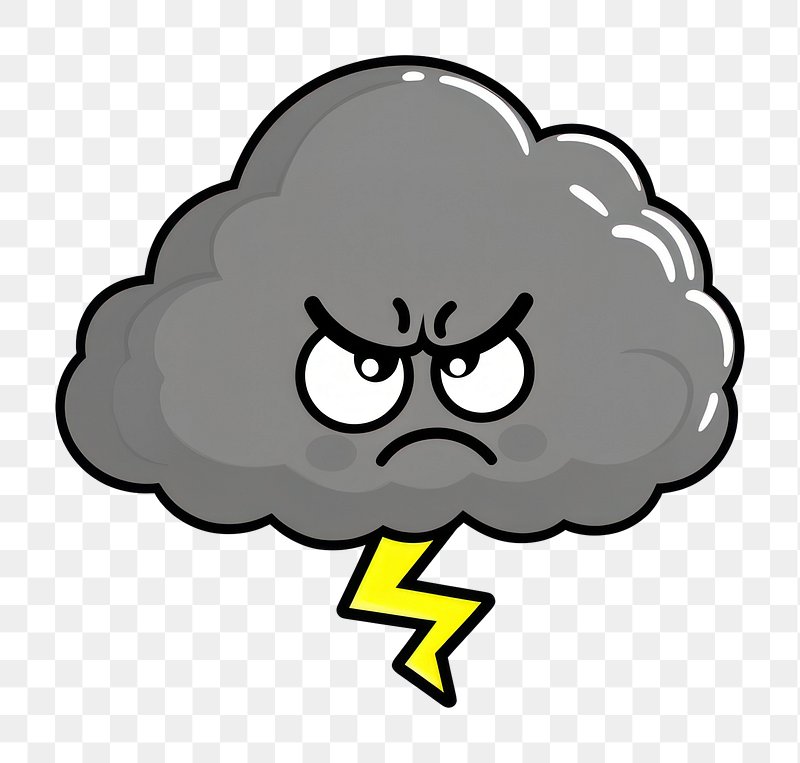 Whimsical cloud with lightning bolt. https://www.rawpixel.com/image/21182177/whimsical-cloud-with-lightning-boltView license