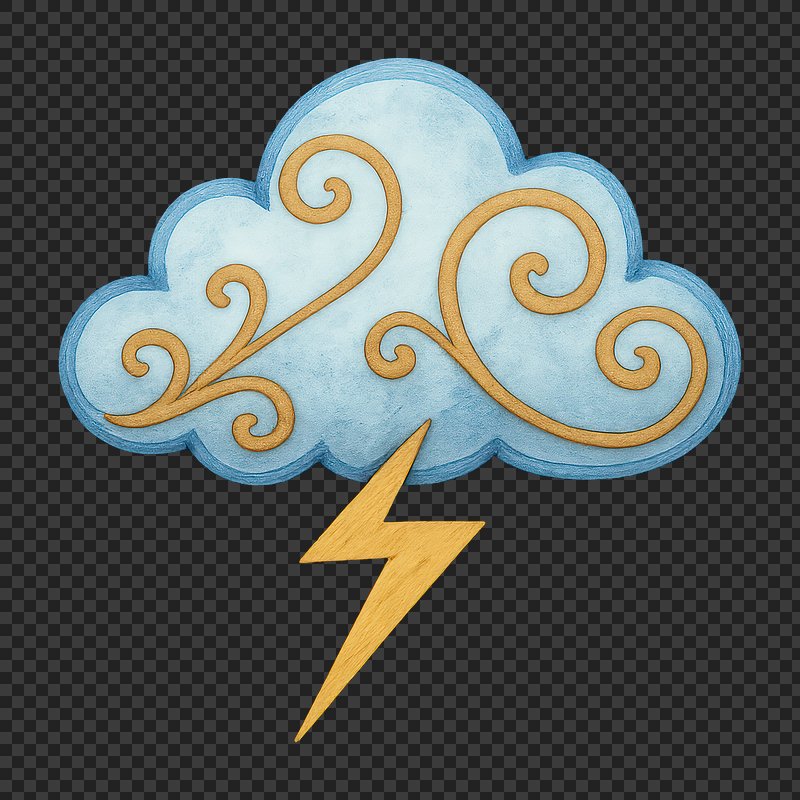 PNG Whimsical cloud with lightning bolt. https://www.rawpixel.com/image/19270967/png-whimsical-cloud-with-lightning-boltView license