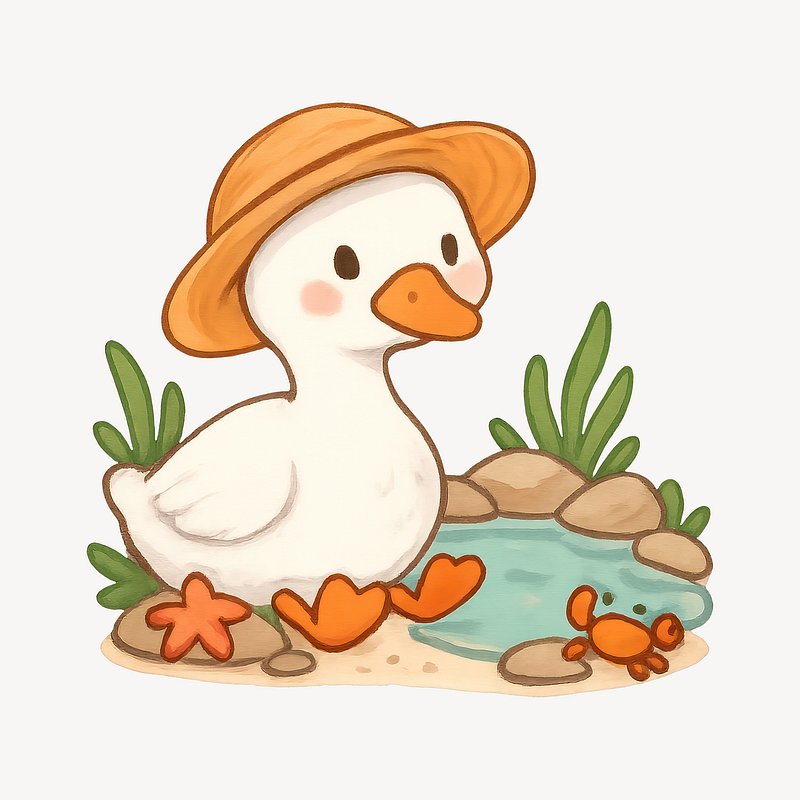 Cute duckling by pond illustration. https://www.rawpixel.com/image/19013139/cute-duckling-pond-illustrationView license