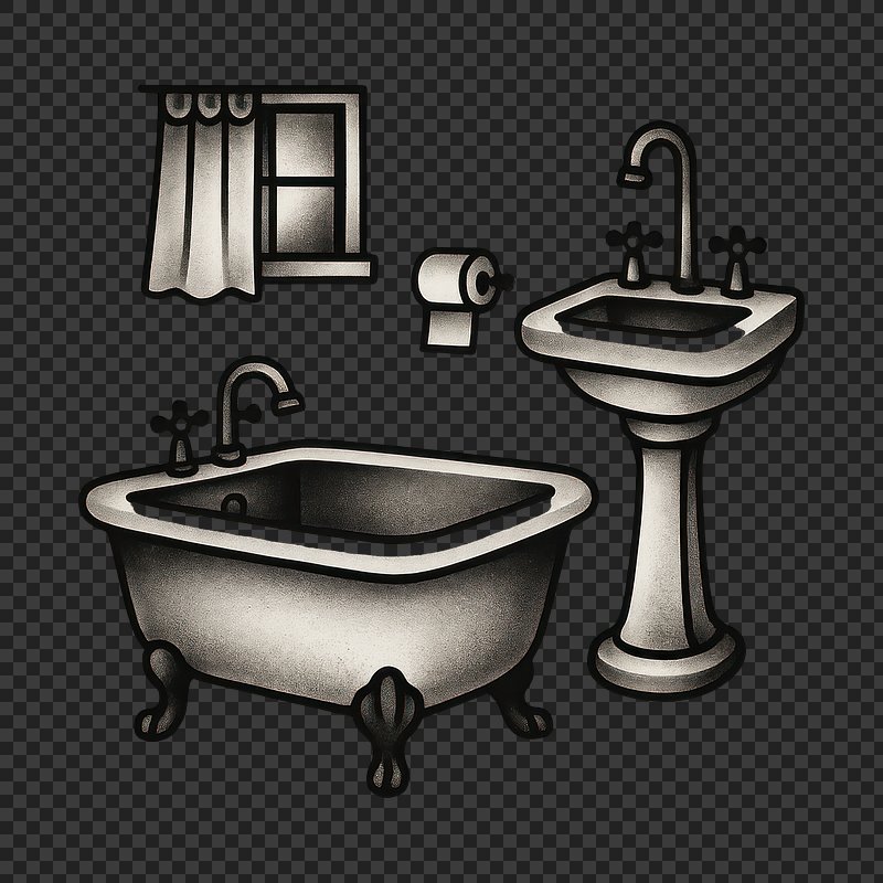 PNG Vintage bathroom fixtures illustration https://www.rawpixel.com/image/22783637/png-vintage-bathroom-fixtures-illustrationView license