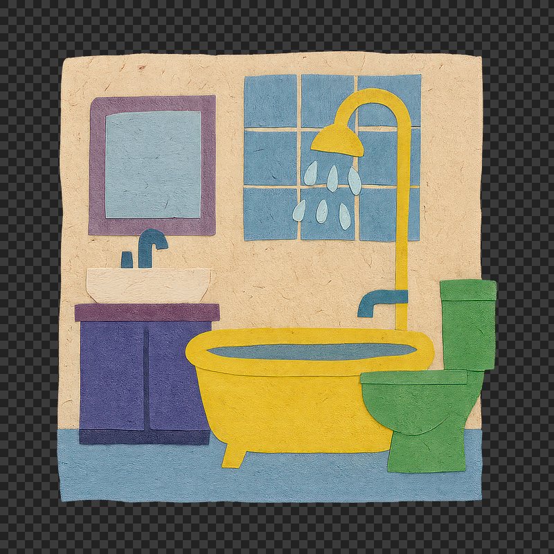 PNG Colorful paper-cut bathroom illustration. https://www.rawpixel.com/image/24450203/png-colorful-paper-cut-bathroom-illustrationView license