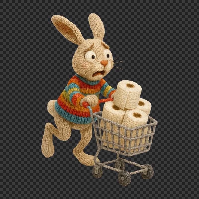 PNG Knitted bunny shopping toilet paper. https://www.rawpixel.com/image/24523069/png-knitted-bunny-shopping-toilet-paperView license