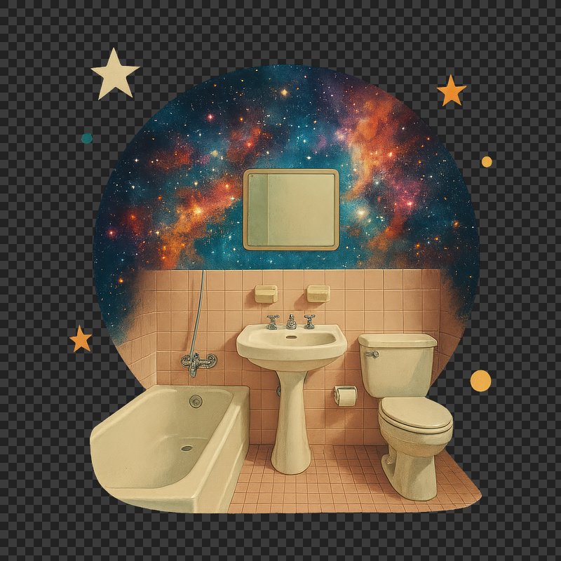 PNG Surreal bathroom with cosmic backdrop. https://www.rawpixel.com/image/24267543/png-surreal-bathroom-with-cosmic-backdropView license