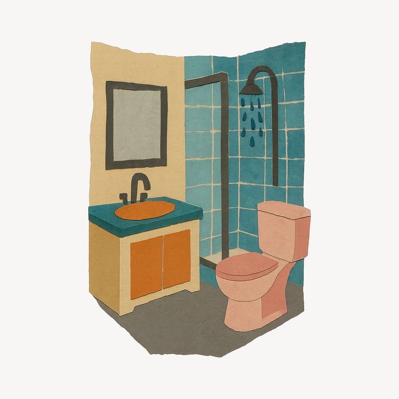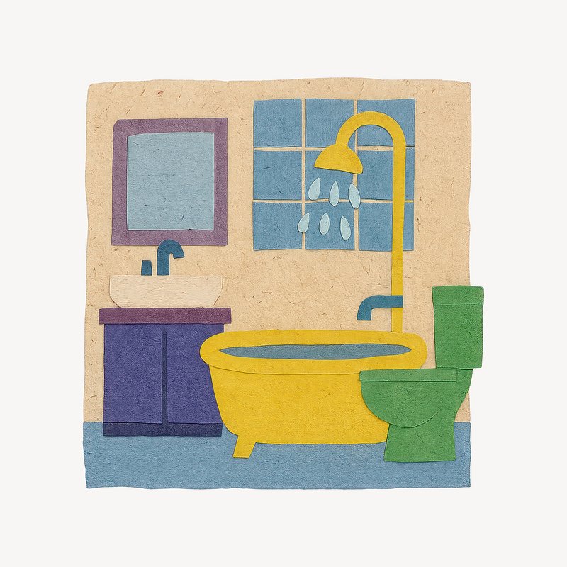 Colorful paper-cut bathroom illustration. https://www.rawpixel.com/image/24529474/colorful-paper-cut-bathroom-illustrationView license