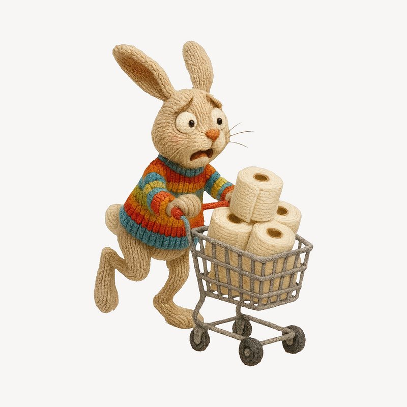 Worried rabbit shopping toilet paper https://www.rawpixel.com/image/24609113/worried-rabbit-shopping-toilet-paperView license