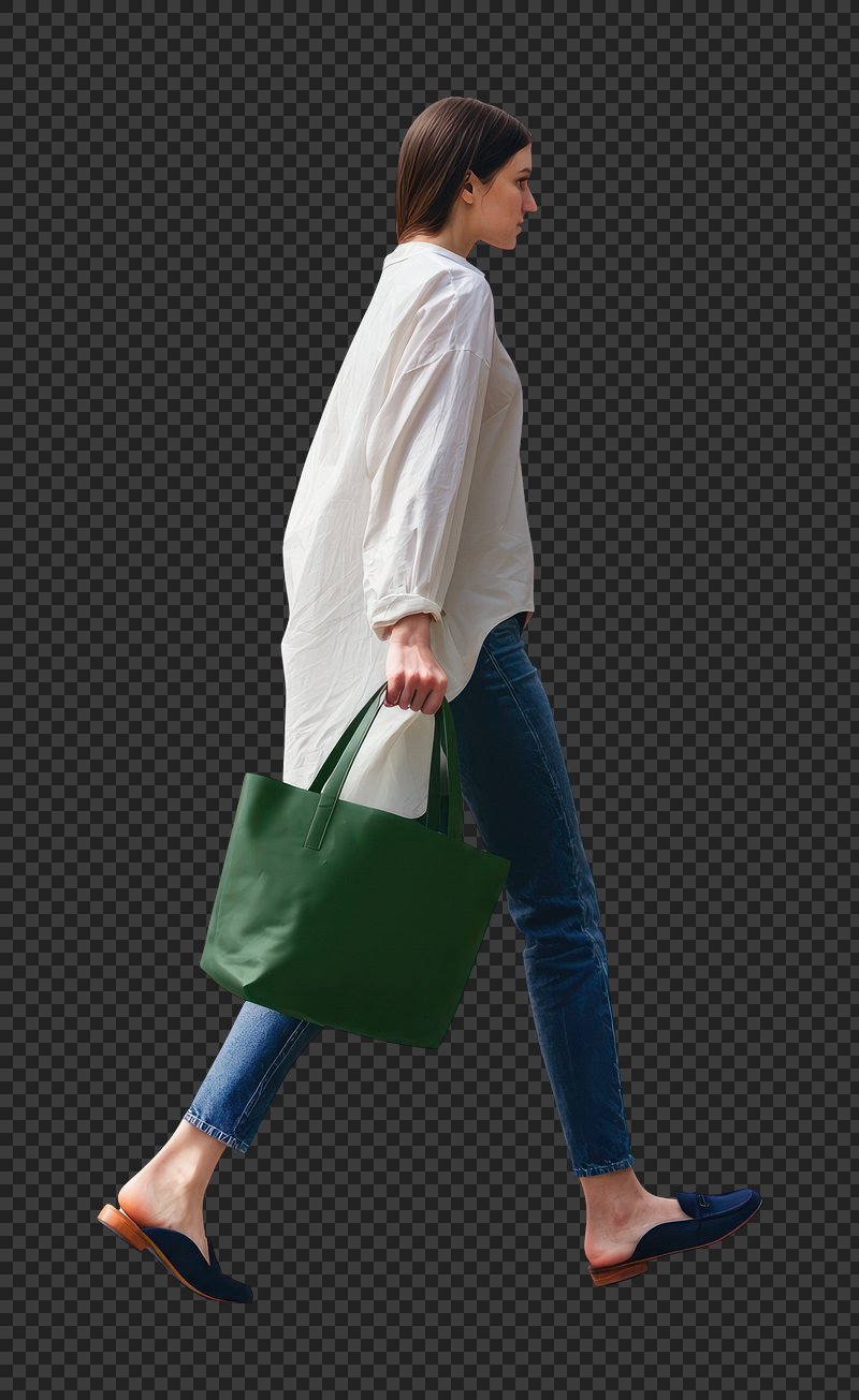 PNG Woman walking with green bag https://www.rawpixel.com/image/25244548/png-woman-walking-with-green-bagView license