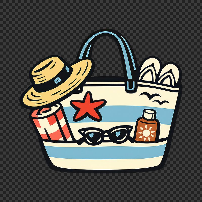 Stylish striped beach bag illustration. https://www.rawpixel.com/image/25559098/stylish-striped-beach-bag-illustrationView license