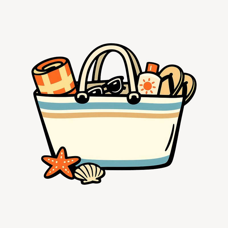 PNG Beach essentials in stylish tote. https://www.rawpixel.com/image/25575523/png-beach-essentials-stylish-toteView license