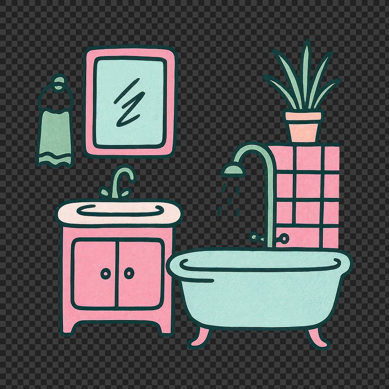 PNG Charming vintage bathroom illustration. https://www.rawpixel.com/image/18958248/png-charming-vintage-bathroom-illustrationView license