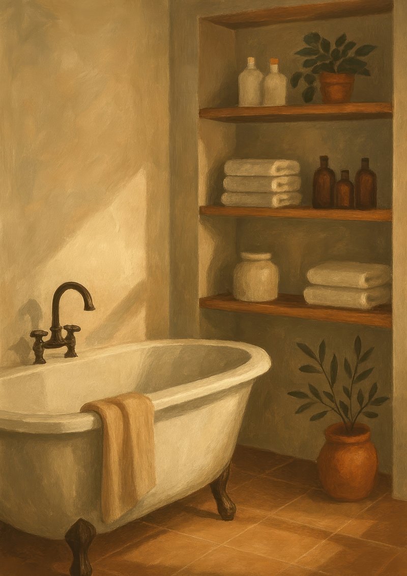 Cozy vintage bathroom illustration https://www.rawpixel.com/image/18401232/cozy-vintage-bathroom-illustrationView license