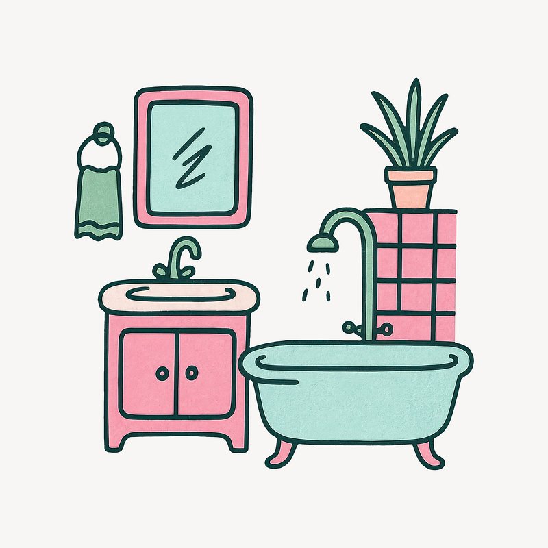 Cozy vibrant bathroom illustration https://www.rawpixel.com/image/18085551/cozy-vibrant-bathroom-illustrationView license