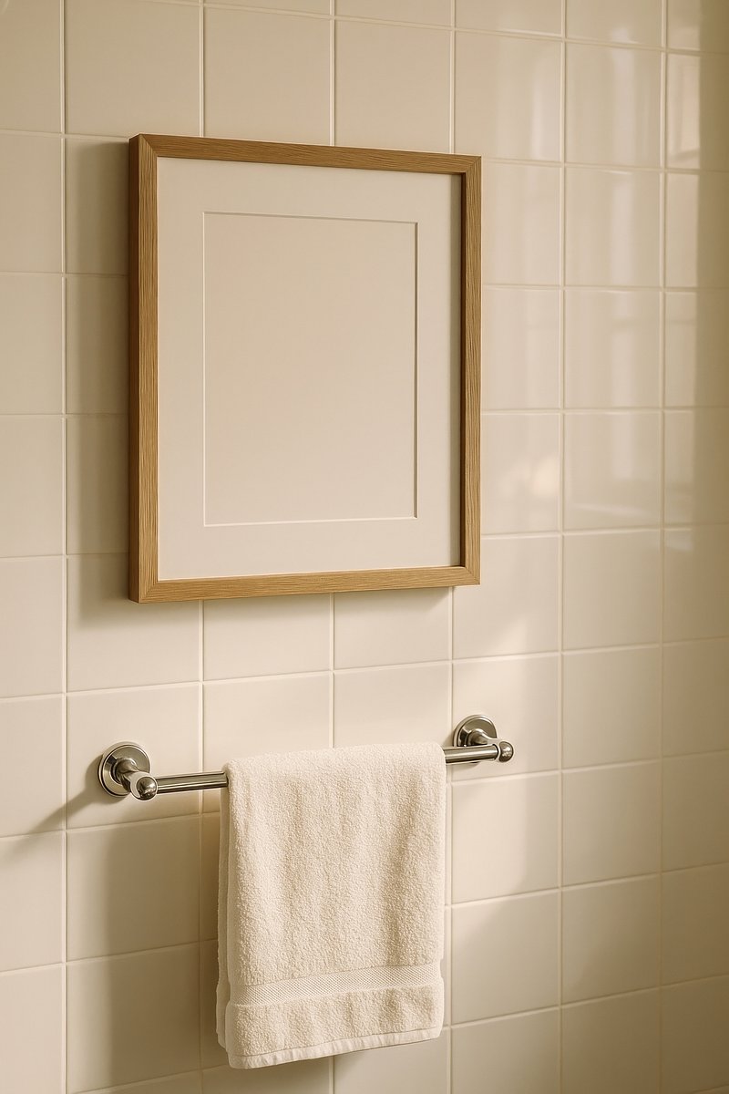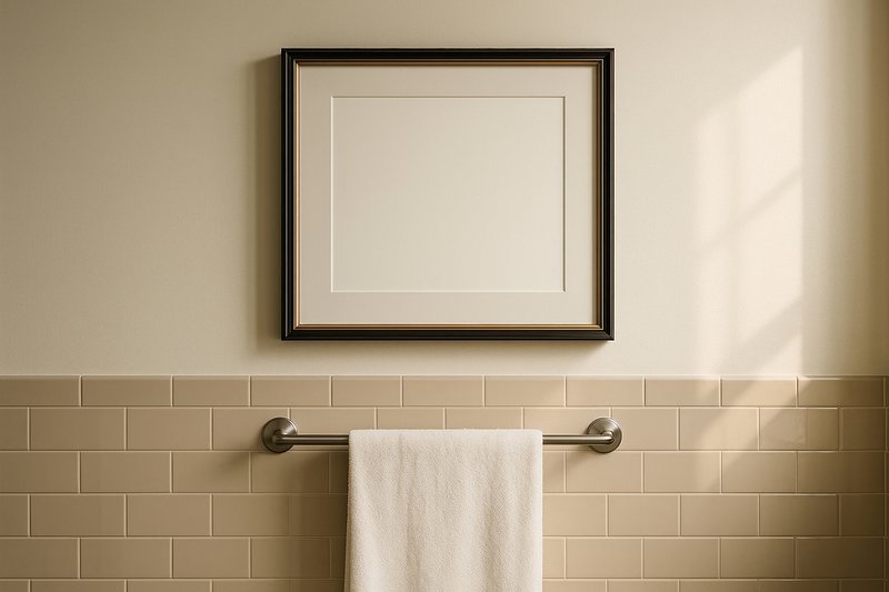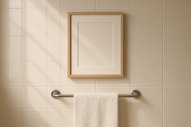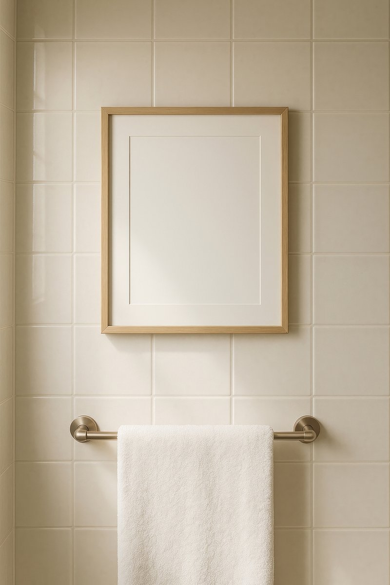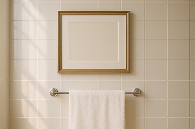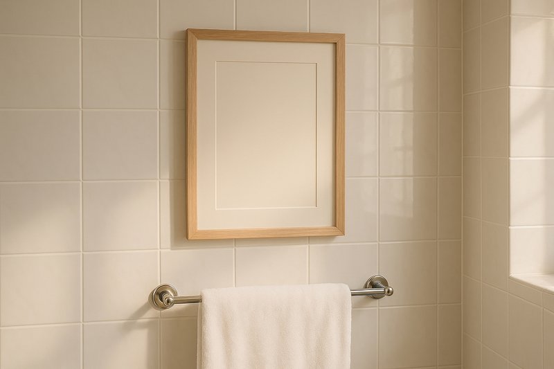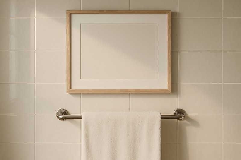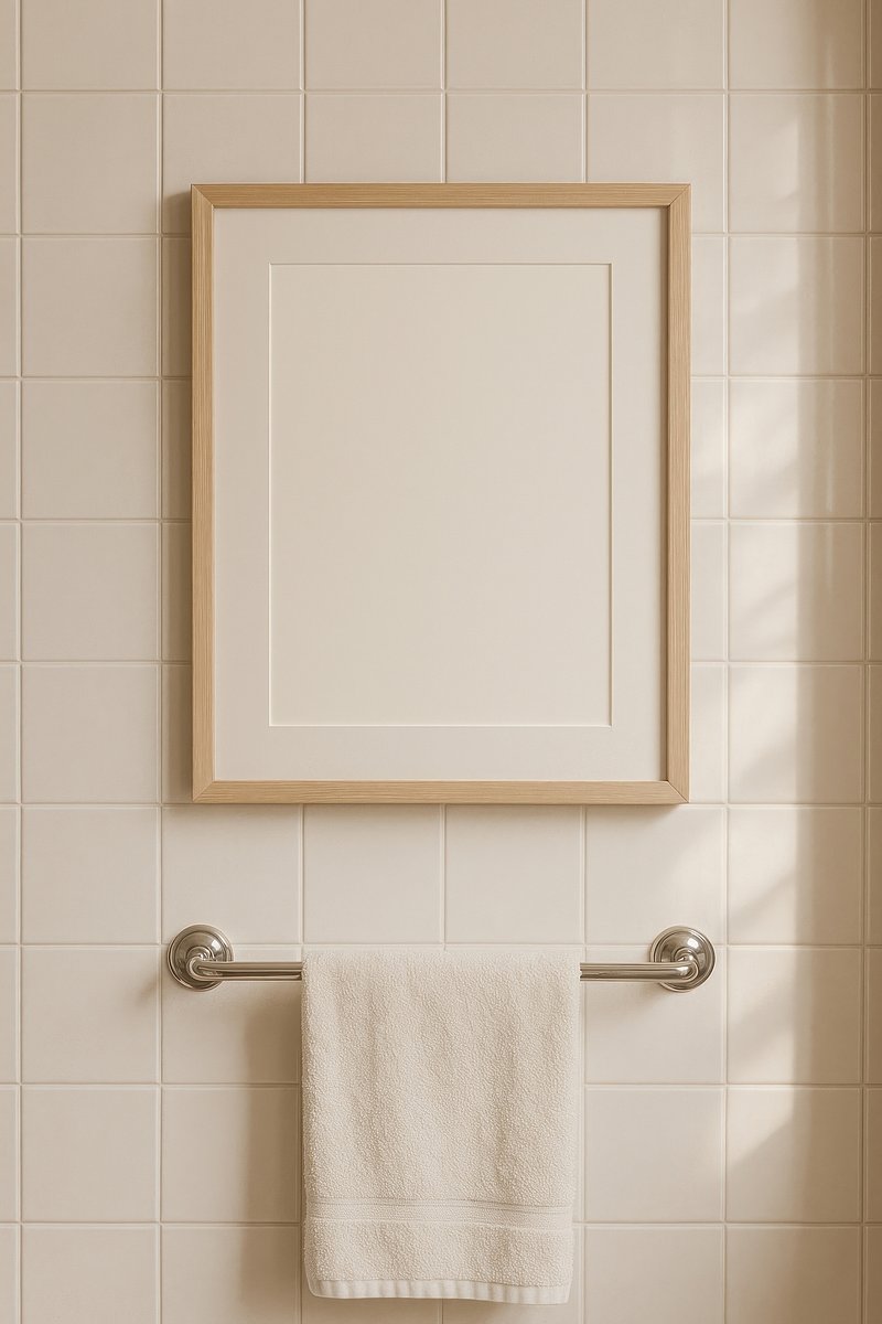 Minimalist bathroom with blank frame. https://www.rawpixel.com/image/24278594/minimalist-bathroom-with-blank-frameView license