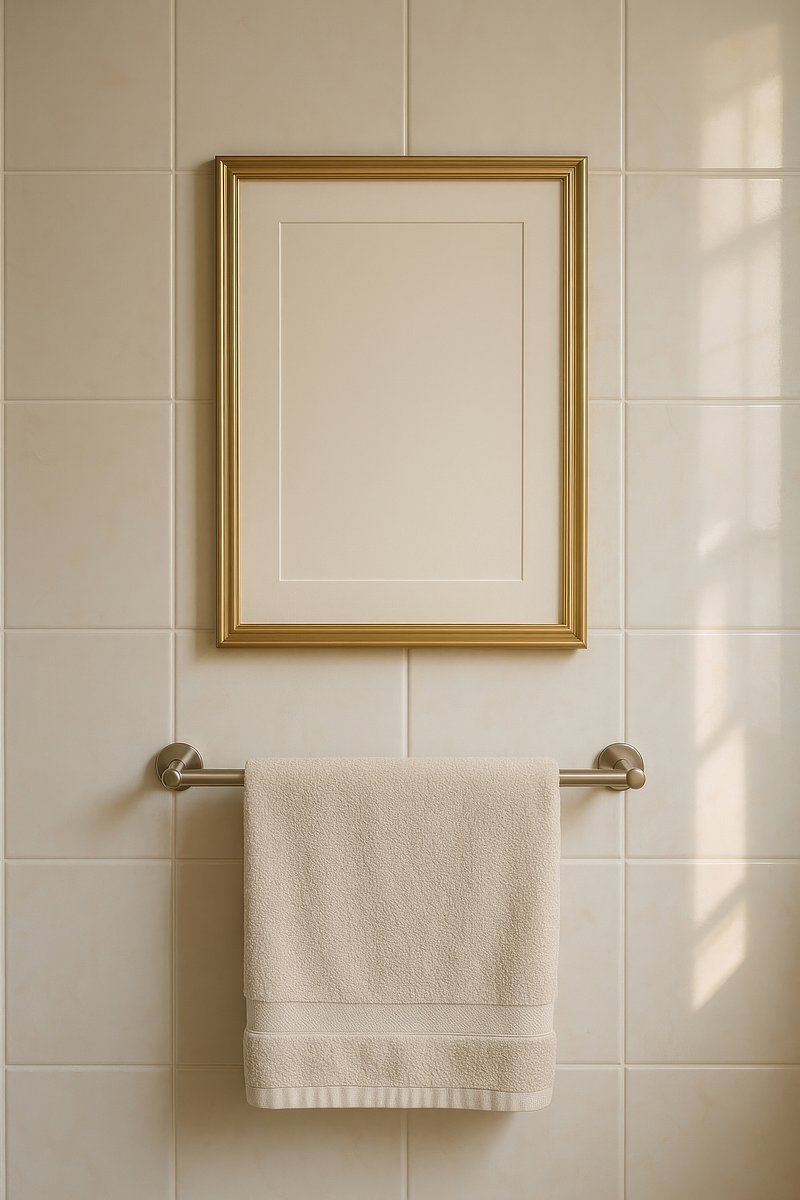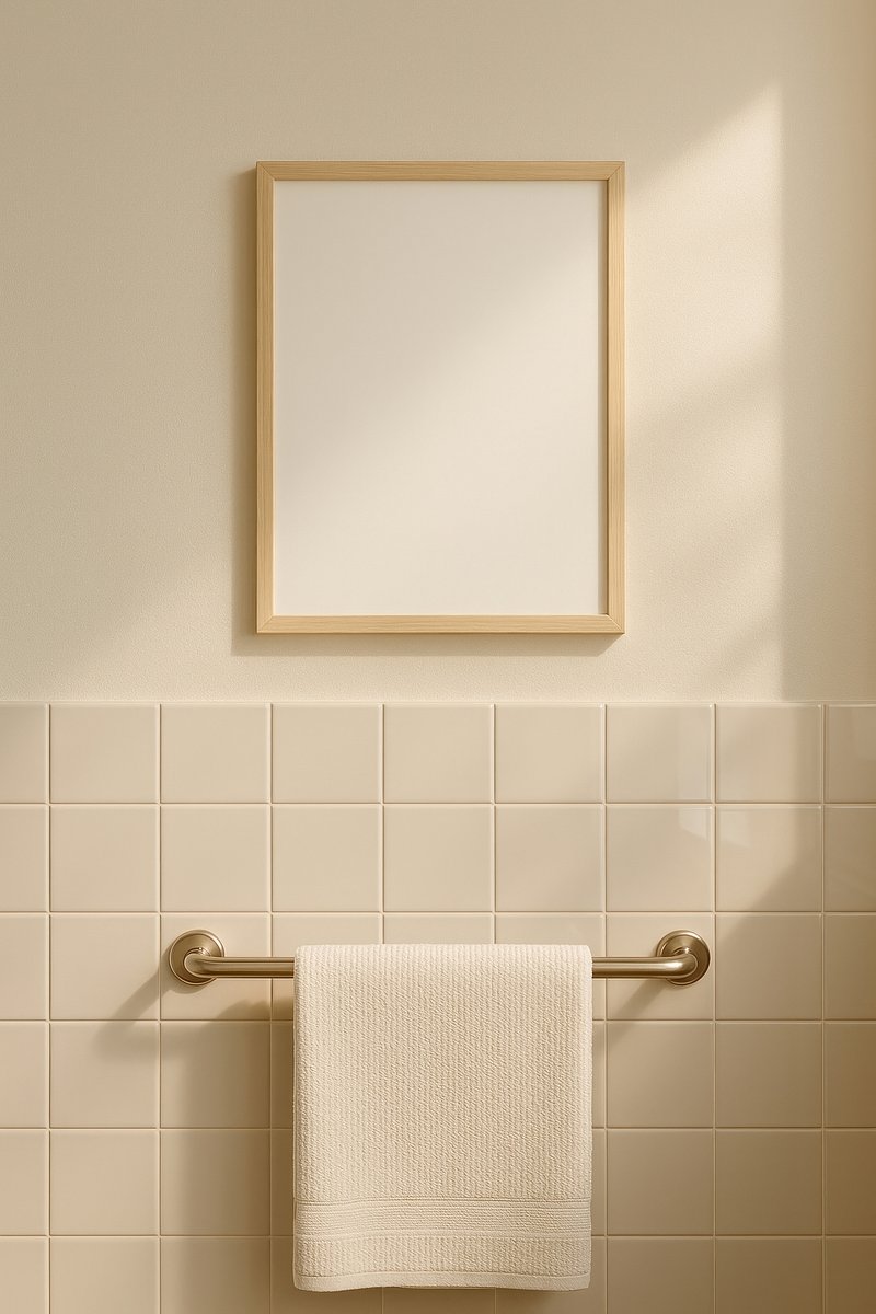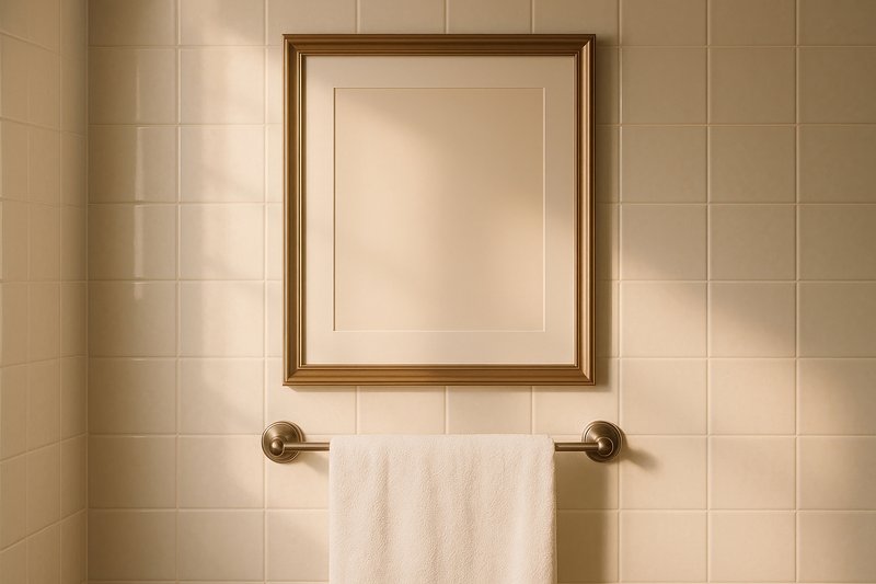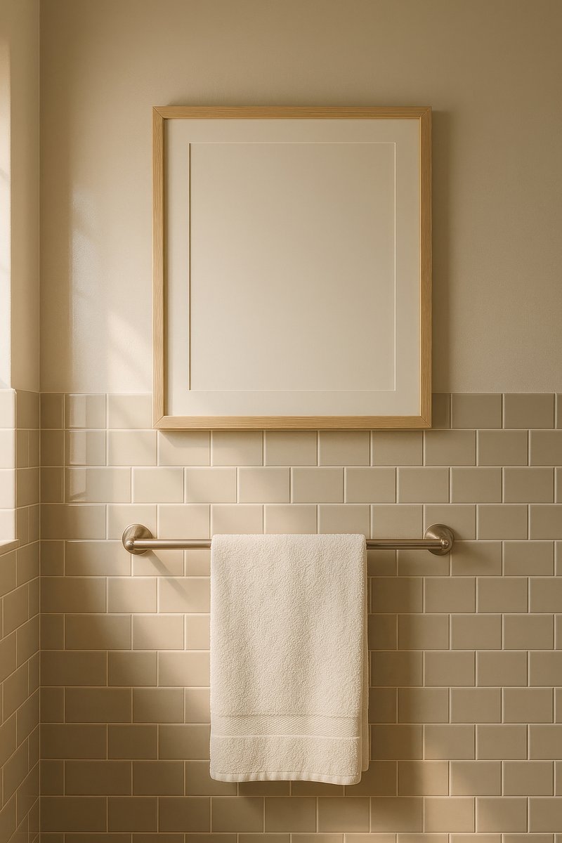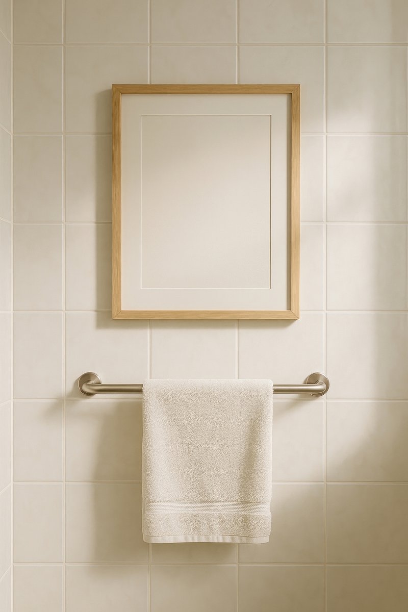 Minimalist bathroom with blank frame. https://www.rawpixel.com/image/24278594/minimalist-bathroom-with-blank-frameView license