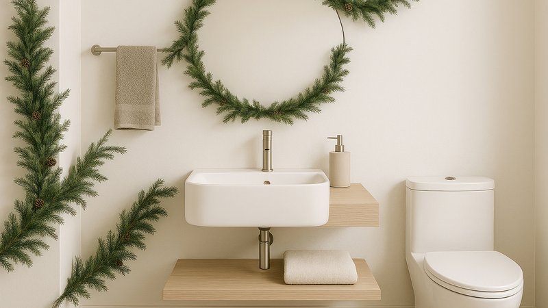 Minimalist bathroom with festive decor. https://www.rawpixel.com/image/23881769/minimalist-bathroom-with-festive-decorView license