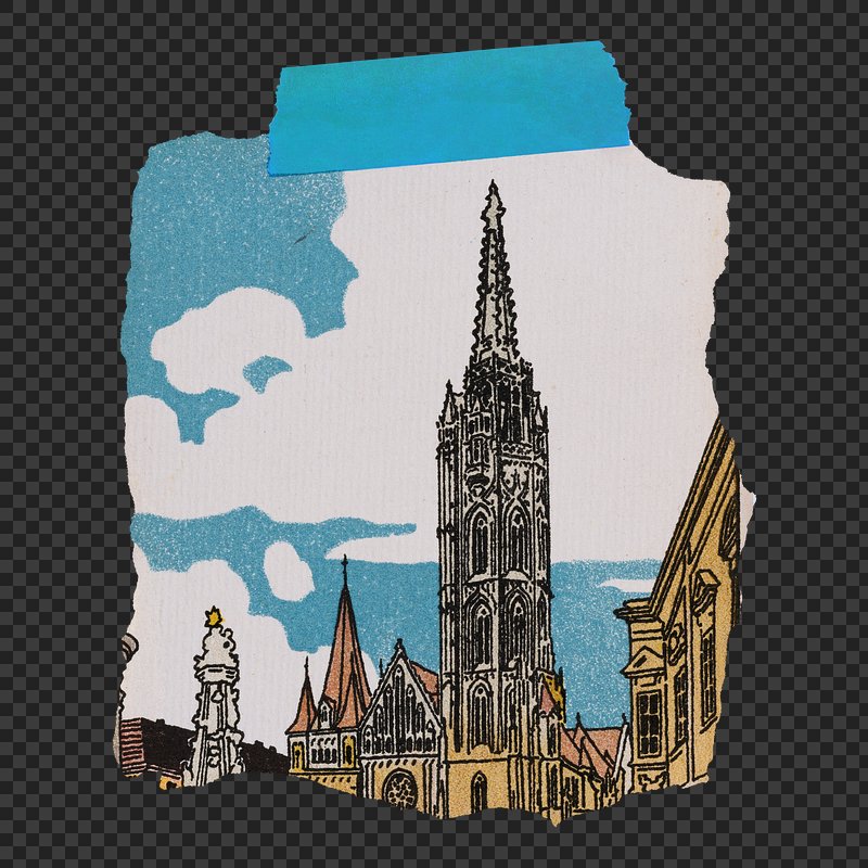 PNG Budapest, Coronation Church (1911) by Franz Bernhard Kuhn and Wiener Werkstätte. Remixed by rawpixel. https://www.rawpixel.com/image/25507871/png-paper-cloudsView license