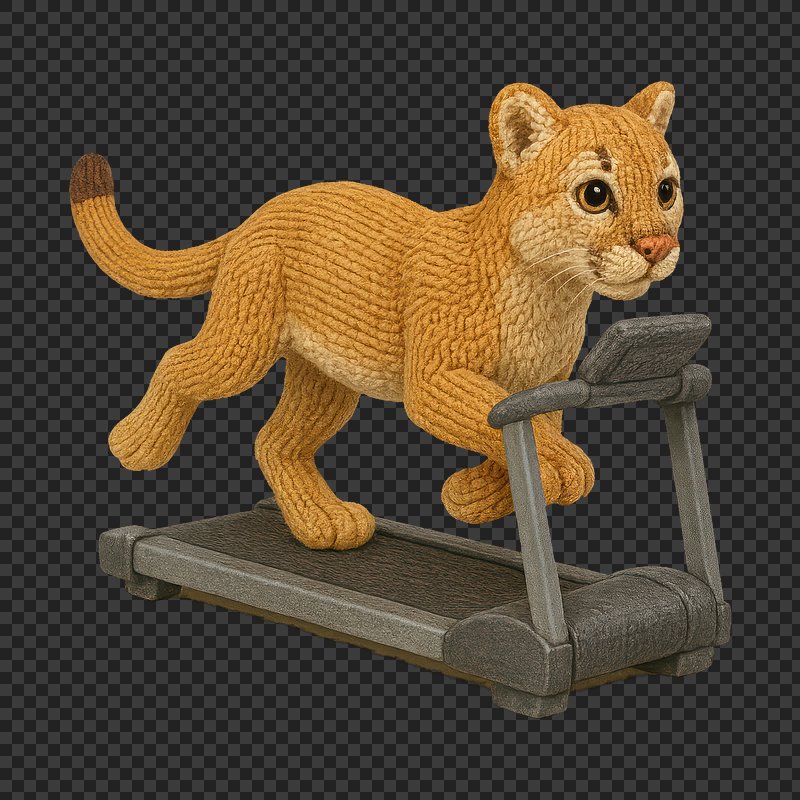 PNG Knitted lion cub exercising treadmill https://www.rawpixel.com/image/24479394/png-knitted-lion-cub-exercising-treadmillView license
