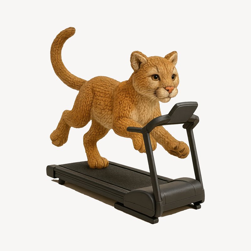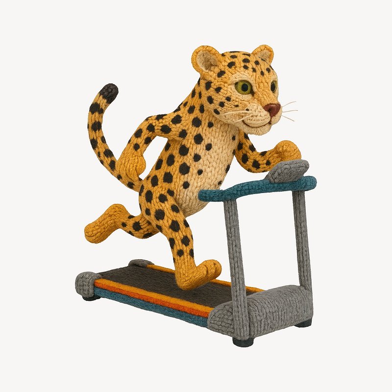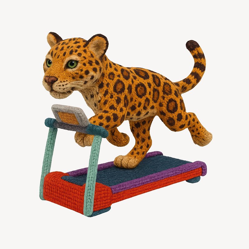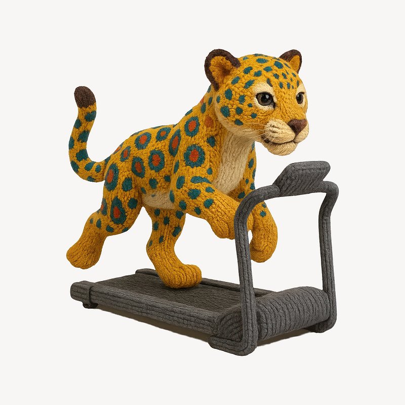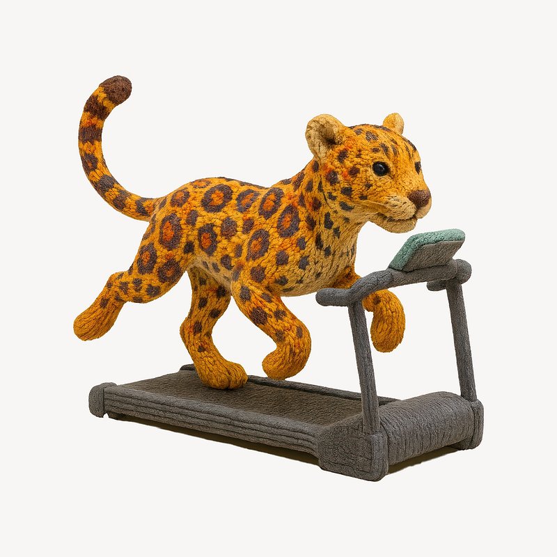 Knitted cheetah exercising treadmill https://www.rawpixel.com/image/24659408/knitted-cheetah-exercising-treadmillView license