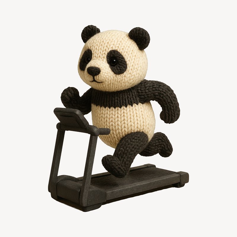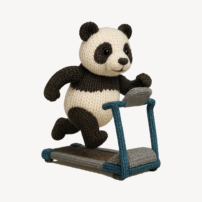 Knitted panda jogging treadmill https://www.rawpixel.com/image/24660826/knitted-panda-jogging-treadmillView license