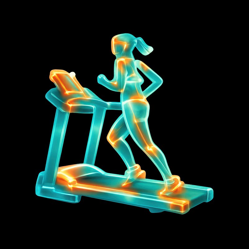 Neon woman running treadmill silhouette. https://www.rawpixel.com/image/25343206/neon-woman-running-treadmill-silhouetteView license