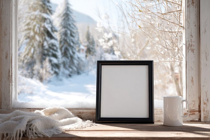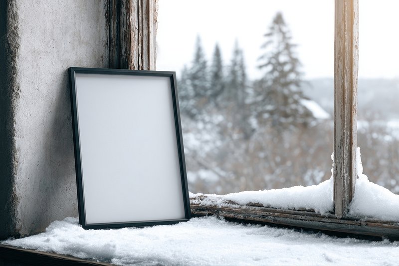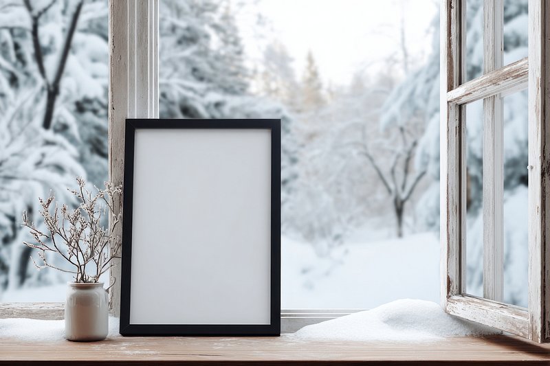 Blank frame on snowy windowsill. https://www.rawpixel.com/image/24202835/blank-frame-snowy-windowsillView license