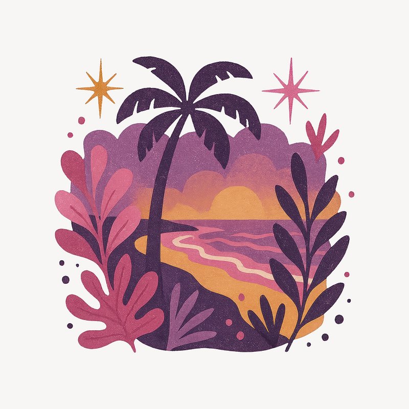 Tropical sunset beach illustration https://www.rawpixel.com/image/24463669/tropical-sunset-beach-illustrationView license