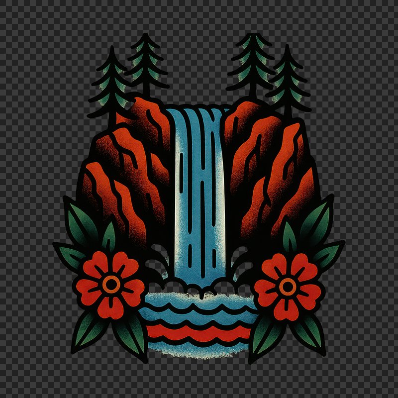 Vintage waterfall tattoo design. https://www.rawpixel.com/image/23462012/vintage-waterfall-tattoo-designView license
