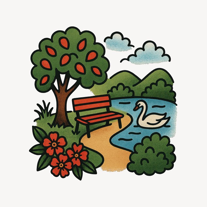Serene park scene illustration https://www.rawpixel.com/image/23461617/serene-park-scene-illustrationView license