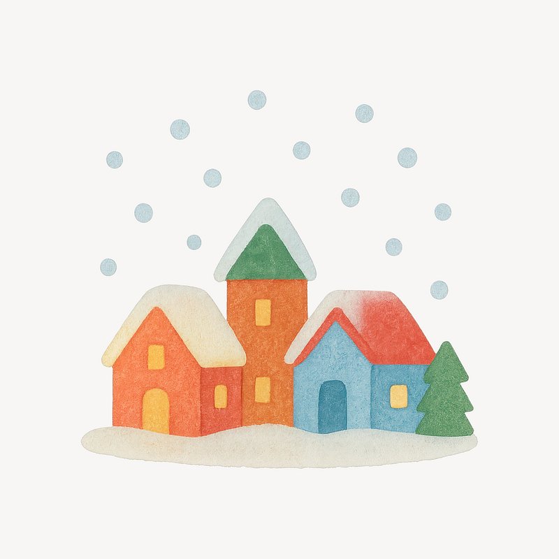 Whimsical snowy village illustration. https://www.rawpixel.com/image/23084598/whimsical-snowy-village-illustrationView license