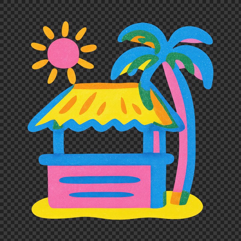 PNG Colorful tropical beach hut illustration. https://www.rawpixel.com/image/23293325/png-colorful-tropical-beach-hut-illustrationView license