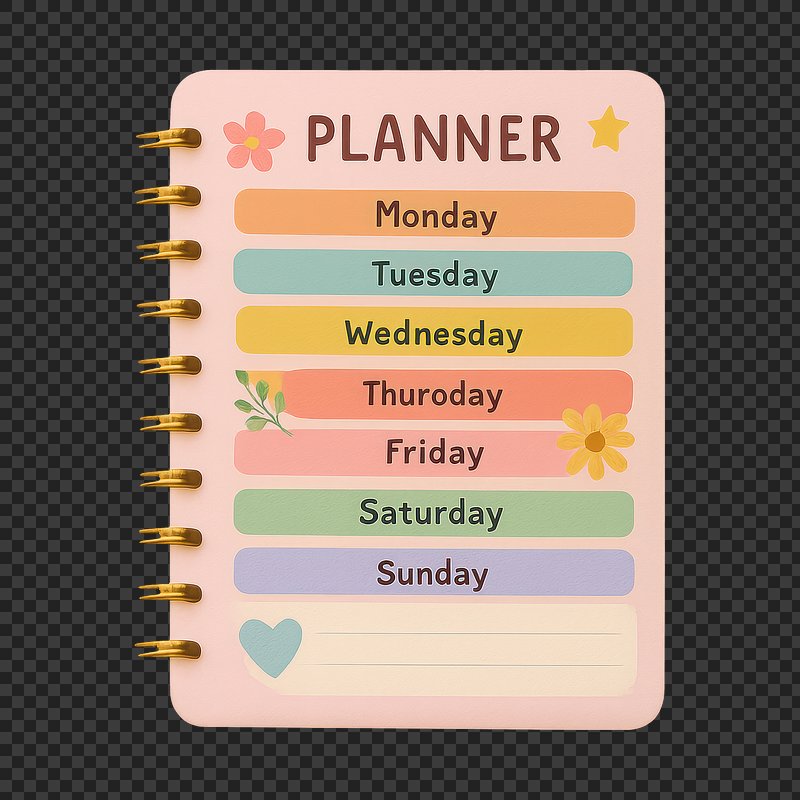 PNG Colorful weekly planner template. https://www.rawpixel.com/image/18923320/png-colorful-weekly-planner-templateView license