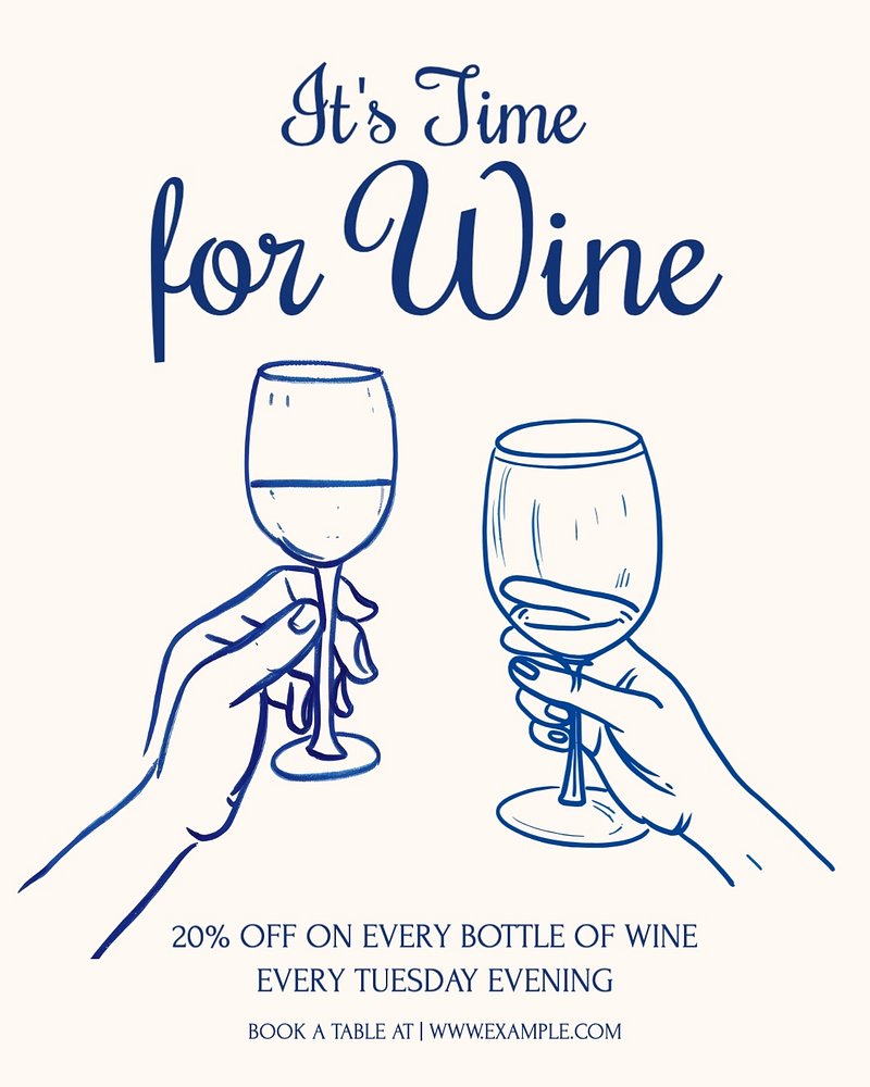 Illustration of two hands holding wine glasses. Wine promotion with text: 'It's Time for Wine.' Wine offer details below.… https://www.rawpixel.com/image/18305224/image-background-png-transparentView license