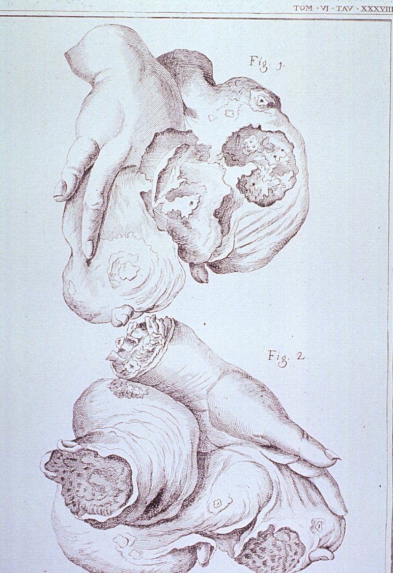 A tumour constricting the entrance to the stomach. Oil painting, 18--. https://www.rawpixel.com/image/13959549/tumour-constricting-the-entrance-the-stomach-oil-painting-18Free Image from public domain license